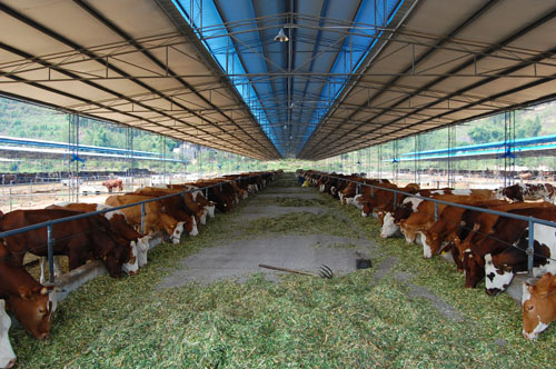 公司直屬優質肉牛育肥場,位于平度市田莊鎮宮東村南1公里處,始建于2009年3月,設計存欄3000頭,現存欄1000余頭,占地100多畝,現有建筑面,18600平方米。公司擁有一批具有養牛經驗的管理、技術、飼養人員。聘請了全國養牛方面的知名專家作為技術顧問。養牛場現有職工23人,具有初、中級以上技術等級和從事養牛5年以上的工人占70%以上,有管理和技術人員5人,其中畜牧獸醫專業中、高級以上職稱3人。本公司通過食品安全認證、質量體系、無公害認證,是國家地理標志保護產品。是肉牛定點屠宰單位。被評為“島城市民最喜愛的農產品品牌”、第一批“平度好食材”。本公司肉牛養殖場喂牛所用飼料全部采用自己配制的飼料,主要使用大豆、玉米、麩皮,大豆經炒料機炒熟后再分碎飼喂,無任何添加劑。公司有火鍋料理店6處,安排從業人員80多人。公司擁有年屠宰加工1萬頭肉牛的屠宰生產線,嚴格執行國家GB/T17238-2008鮮凍牛肉分割標準,并按伊斯蘭清真屠宰要求進行屠宰分割以及排酸嫩化處理。我公司生產的牛柳、西冷、肉眼、上腦、S腹肉等產品主要銷往上海,北京,南京,濟南,青島,煙臺等大中城市的四、五星級酒店,用作西餐、韓餐、日餐、中餐等深受用戶青睞。